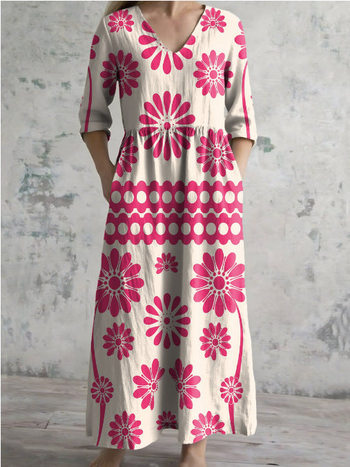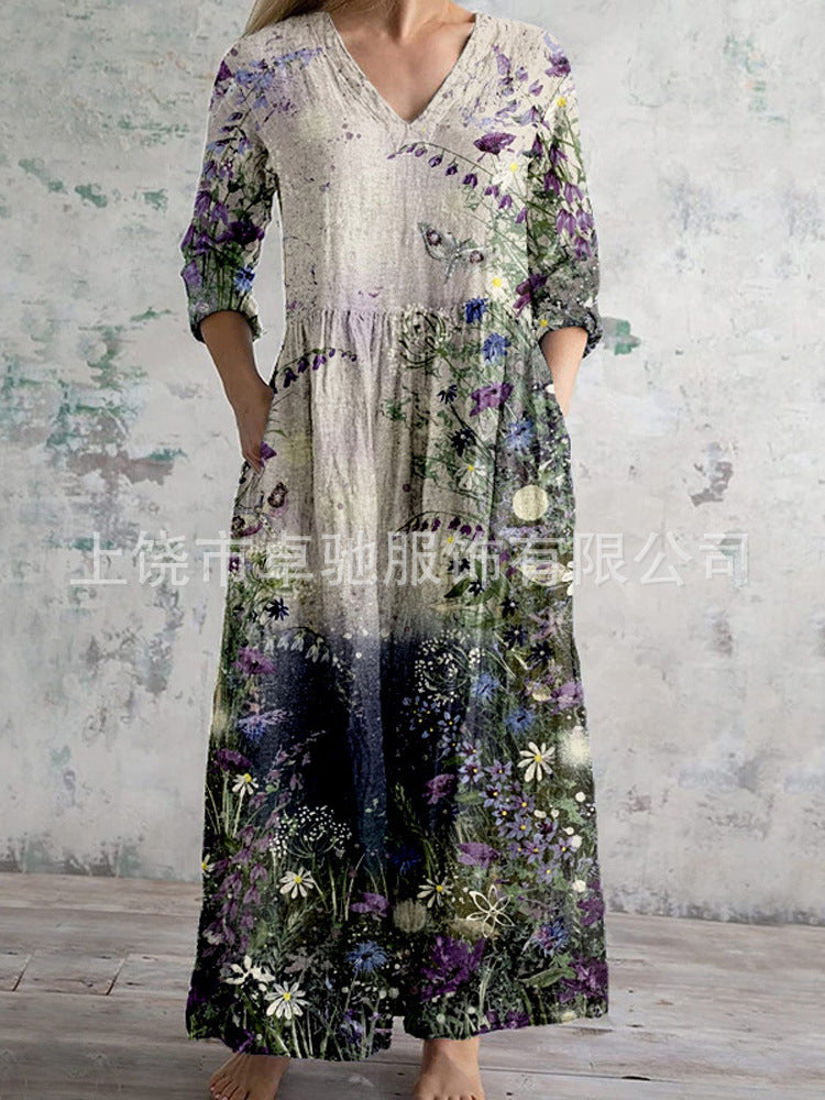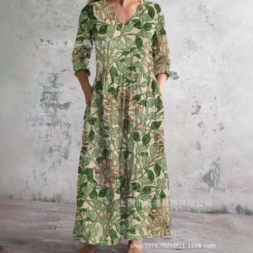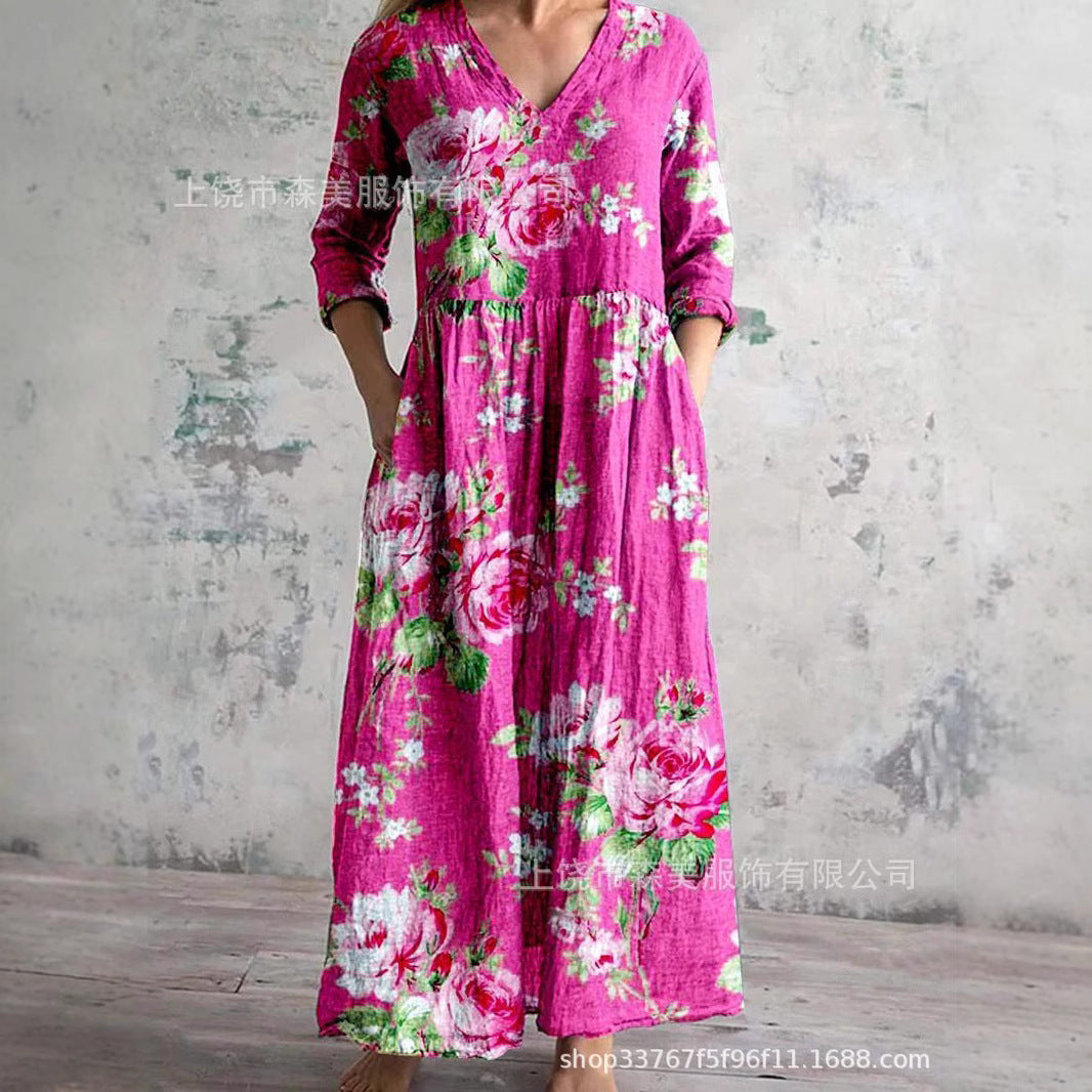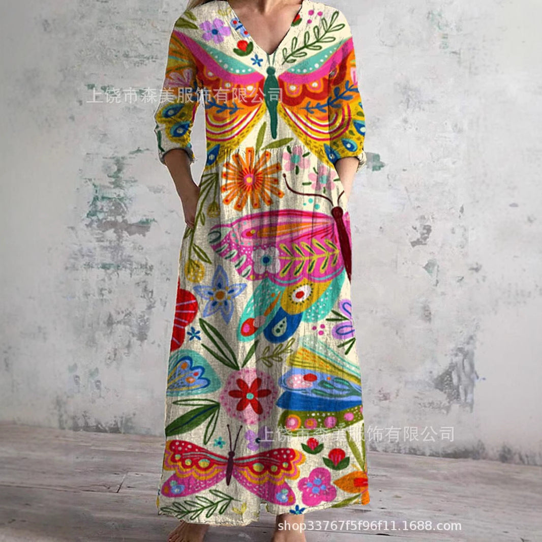 2025外贸跨境新款欧美3d印花亚马逊欧美夏季休闲宽松长袖连衣裙